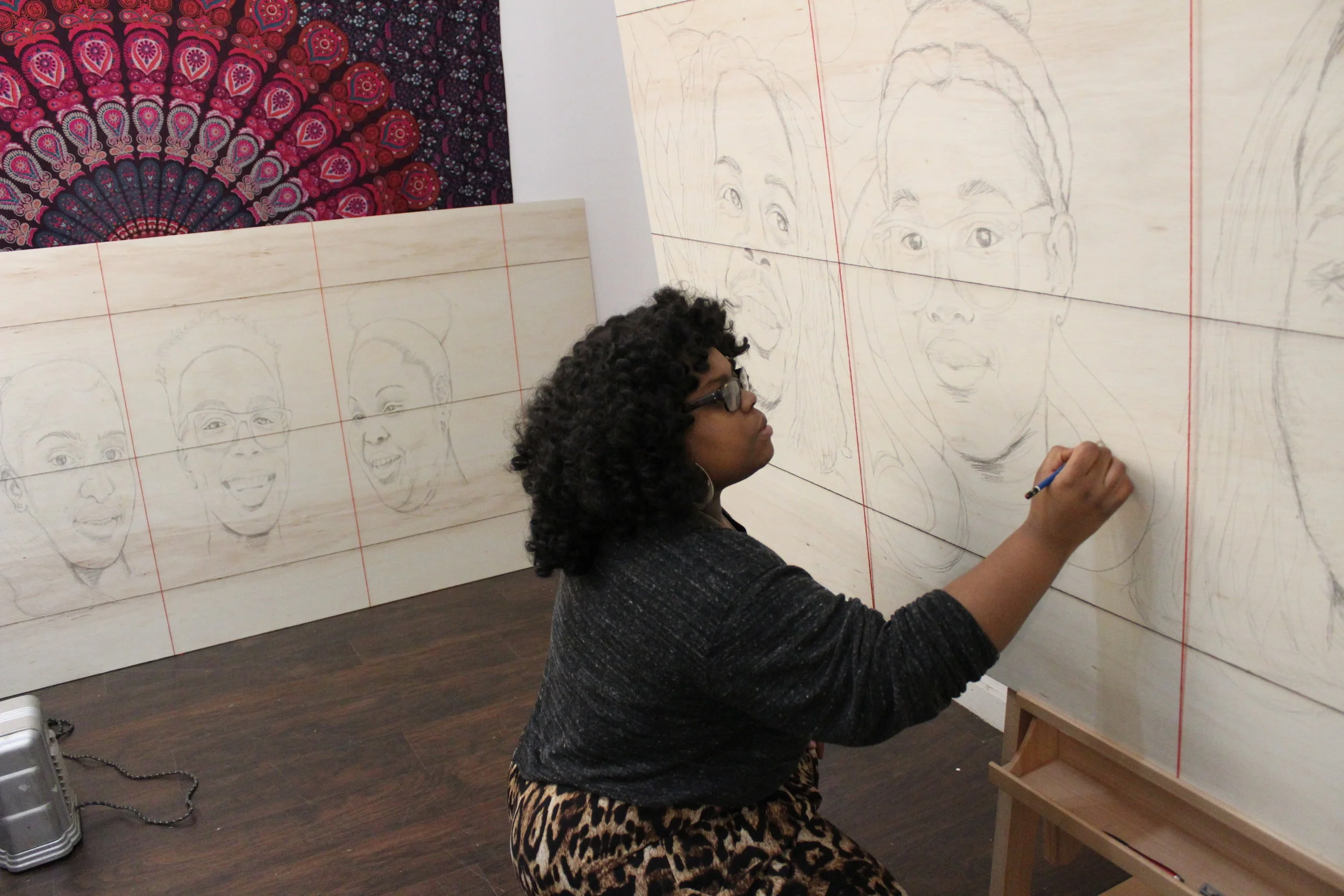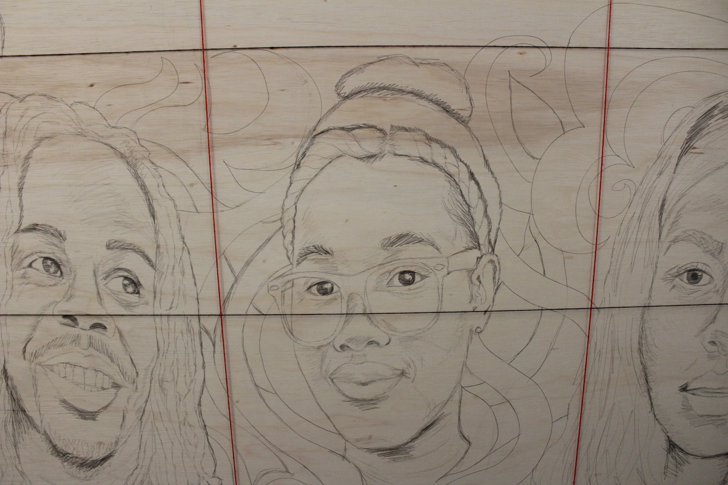 When making the abstract forms I kept thinking of filigree or plants blossoming. Much of what community members kept saying about Mattapan involved vibrance, strength, and room to grow..... It seemed like a good concept to interpret in the artwork abstractlly amongst the literal faces of the community.